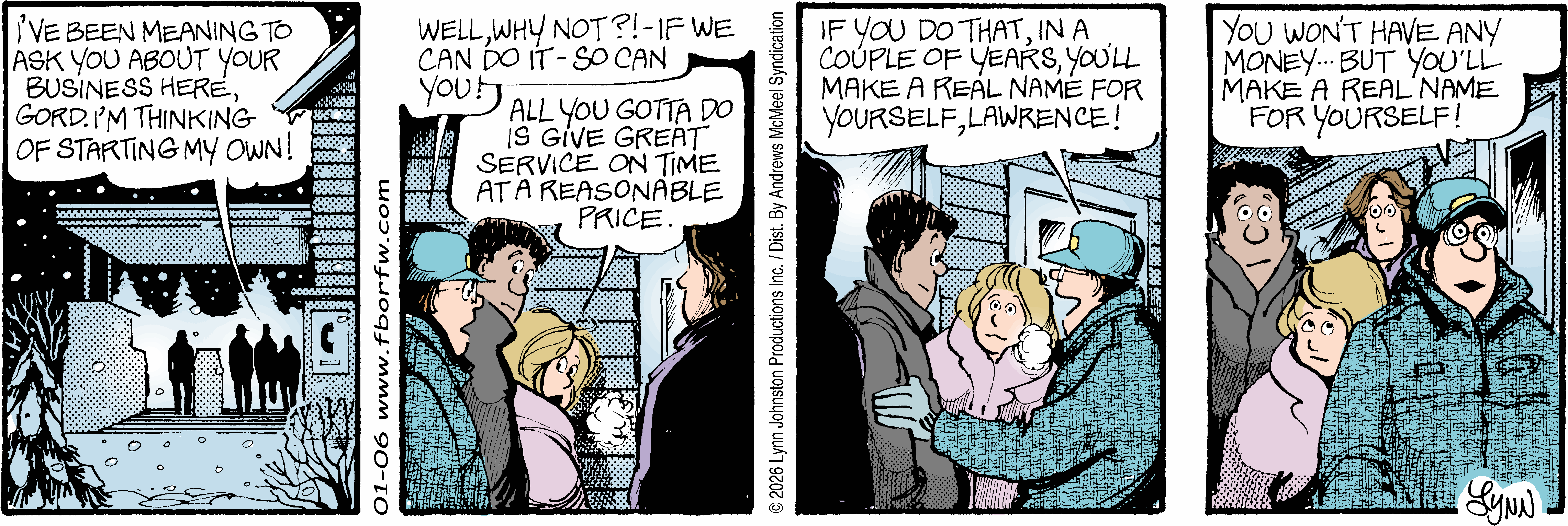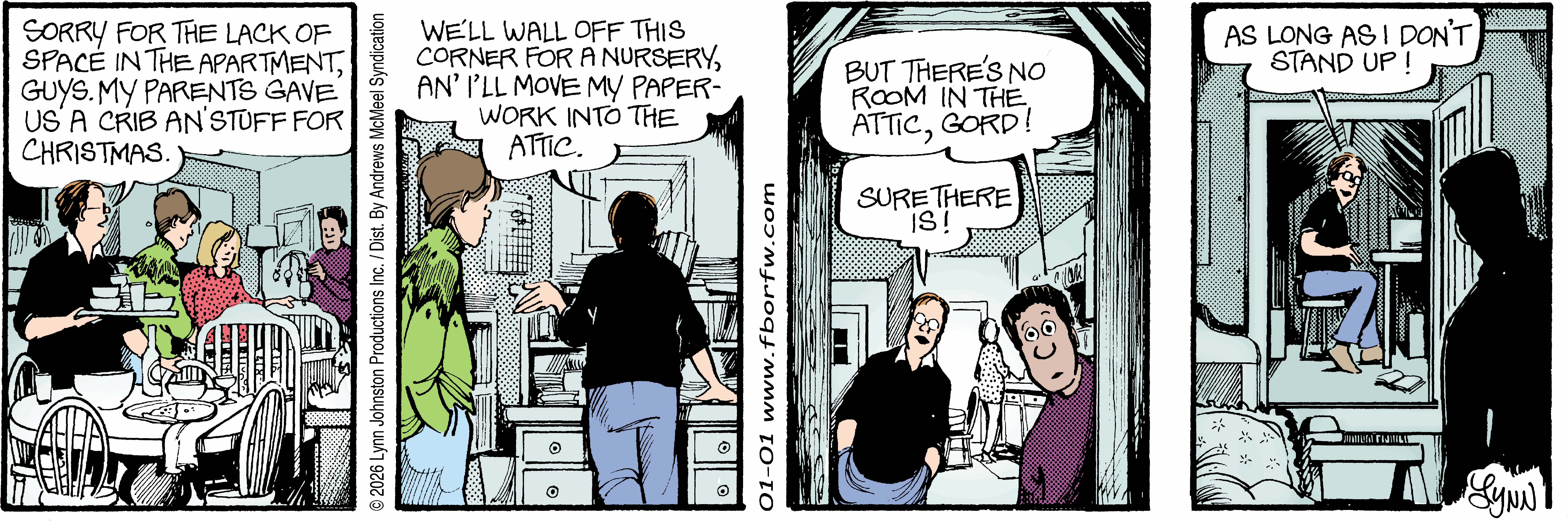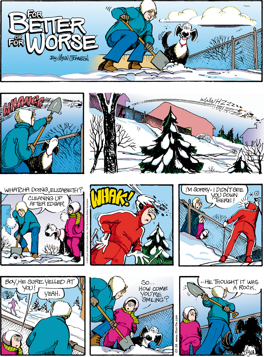 Lynn's Comments: Changing a character’s hair was always a big deal. I figured it wouldn’t make sense for teenagers to not go through some experimentation, so both Elizabeth and Michael had some different “looks” throughout the latter part of the strip. Elly and John, however, stayed pretty much the same.